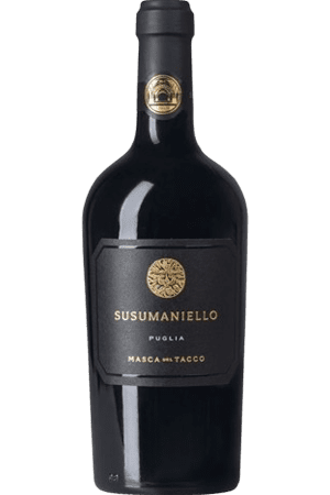 Schitterende diep robijnrode wijn met stralende paarse tinten. De Masca del Tacco Susumaniello is een heerlijke wijn afkomstig uit de Italiaanse streek Puglia. Rijk aan geuren van bosbessen, rijp rood fruit, hout, bloemen, tabak, kruiden en pittigheid. Een ware smaaksensatie vol elegantie, krachtigheid, fruitigheid, smakelijkheid en een lange afdronk.