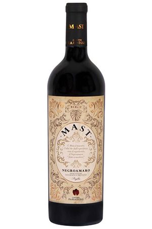 Der Paradiso Mast Negroamaro ist ein gehaltvoller, fruchtiger Wein mit köstlichen Aromen von reifen Früchten kombiniert mit Vanille- und Mokka-Noten. Der Wein ist vollmundig und fruchtig mit einem Hauch von Eiche und weichen Tanninen.