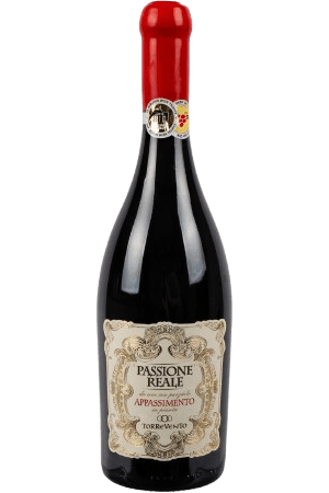 Der Torrevento Passione Reale Appassimento ist ein wunderschöner, vollmundiger Wein. In der Nase bietet er reife Aromen von Kirschen, Beeren und würzigen Noten. Er hat einen kräftigen Geschmack mit viel Frucht, kombiniert mit Pfeffer, Lakritz und Kakao. Ein Schluck gipfelt in einem langen Abgang.